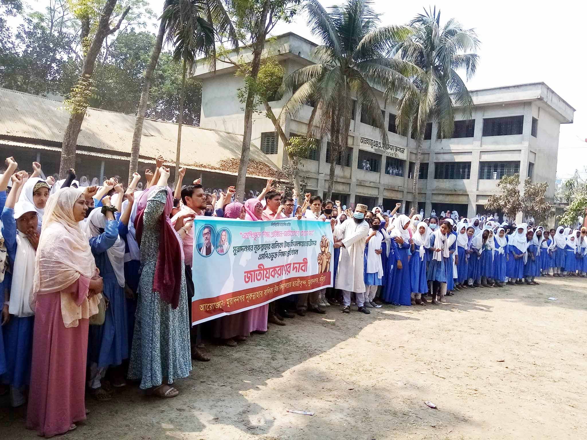 সরকারি ও বেসরকারি শিক্ষক— কমর্চারিদের বেতন ভাতার বৈষম্য দূরীকরণের লক্ষ্যে বেসরকারি শিক্ষা প্রতিষ্ঠান জাতীয়করণের দাবিতে সারা দেশের ন্যায় কুমিল্লার মুরাদনগরেও কর্মবিরতি পালন করেছে উপজেলার সকল এমপিও ভুক্ত শিক্ষা প্রতিষ্ঠান।