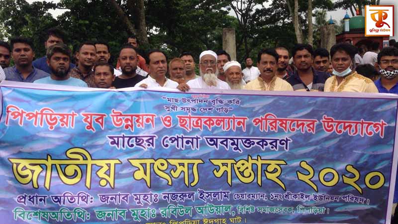 মাছ উৎপাদন বৃদ্ধি করি সূখী সমৃদ্ধ দেশ গড়ি। এ স্লোগানকে সামনে রেখে জাতীয় মৎস্য সপ্তাহ ২০২০ উপলক্ষে কুৃমিল্লা বাঙ্গরা বাজার থানাধীন এক নং শ্রীকাইল ইউনিয়নের পিপড়িয়া যুব উন্নয়ন ও ছাত্র কল্যান পরিষদের উদ্যোগে মাছের পোনা অবমুক্ত করা হয়েছে।