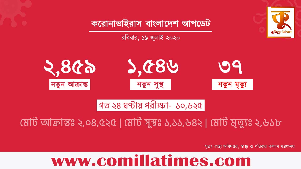 গত ২৪ ঘন্টায় ৩৭ জনের মৃত্যু, নতুন আক্রান্ত ২৪৫৯