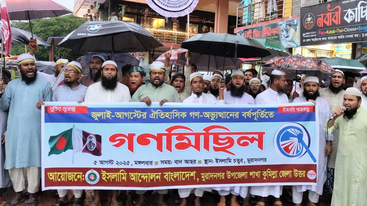 ৩৬ জুলাইয়ের ঐতিহাসিক ছাত্র-জনতার গণঅভ্যুত্থানের এক বছর পূর্তি উপলক্ষে গণমিছিল করেছে ইসলামি আন্দোলন বাংলাদেশ মুরাদনগর উপজেলা শাখা।