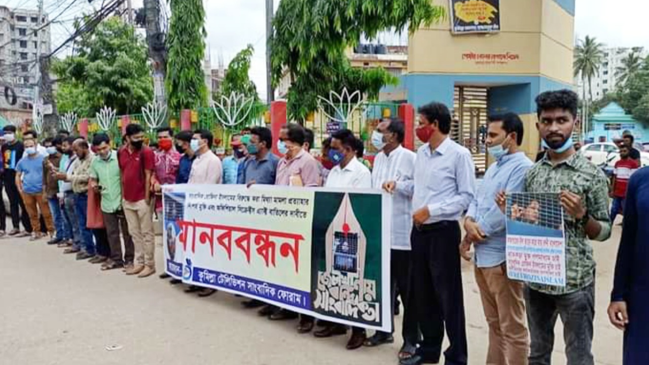 প্রথম আলোর সিনিয়র রিপোটার্র রোজিনা ইসলামের মামলা প্রত্যাহার ও নিঃশর্ত মুক্তির দাবী মানবন্ধন করেছে কুমিল্লার সাংবাদিক সংগঠনগুলো। বুধবার (১৯ মে) সকাল সাড়ে ১০ টায় নগরীর প্রানকেন্দ্র টাউন হলের সামনে এই মানববন্দন অনুষ্ঠিত হয় । প্রথমে মানববন্ধন করেন কুমিল্লা টেলিভিশন সাংবাদিক ফোরাম, তারপরেই ফটো সাংবাদিক ফেরাম, বাংলাদেশ যুব অধিকার পরিষদ ও কুমিল্লায় কর্মরত গণমাধ্যমকমীর্দের ব্যানারে মানববন্ধন অনুষ্ঠিত হয়।