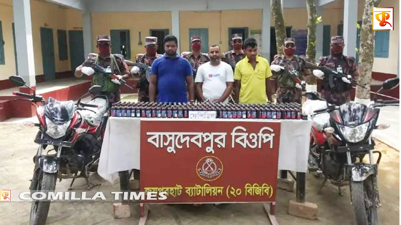 ২০ বর্ডার গার্ড ব্যাটালিয়ন বিজিবি কর্তৃক ১৯৬ বোতল ফেন্সিডিল ২ টি হোন্ডা সহ গ্রেফতার ৩